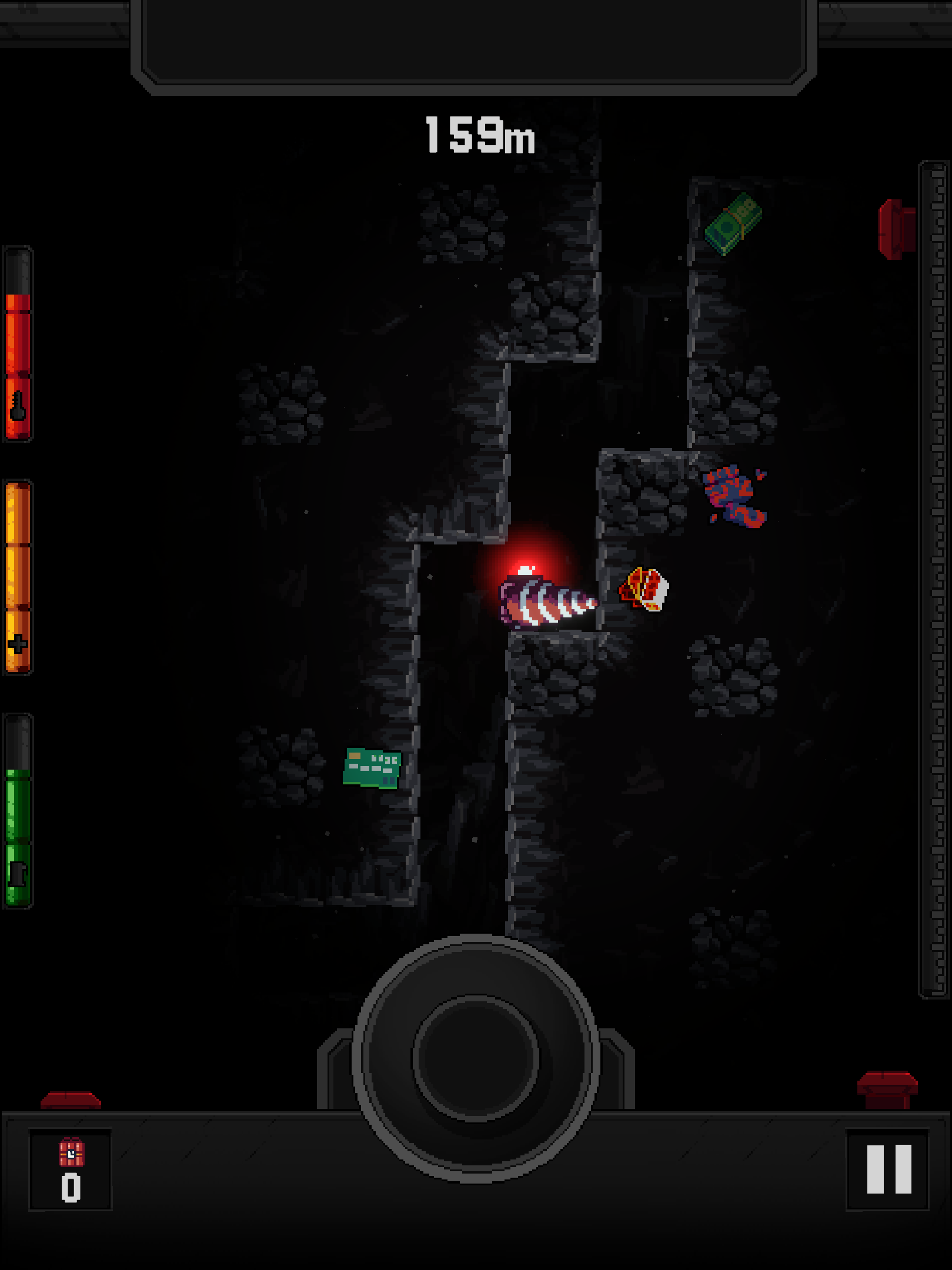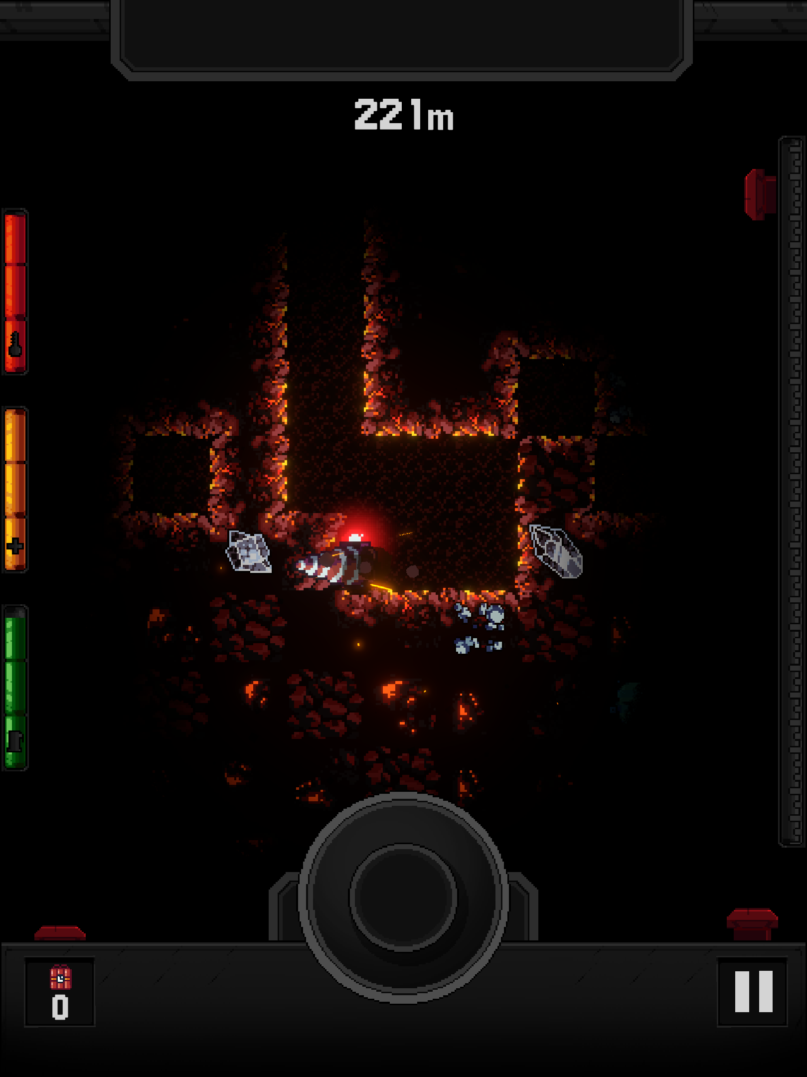 Sell what you find, upgrade your vehicle, and head back down to dig even deeper. Improve your drill, light, cargo, temp, fuel, and hull to stay underground longer and reach rare riches hidden far below the surface.